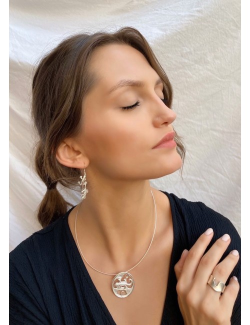 Dragon collection is an abstract representation of the wings of this mystic being, the jewelry pieces carefully designed and fired in sterling silver as a symbol of protection to his owner. If you desire, it is available in 18 karat gold and small diamond setting